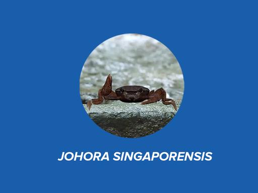 Jo, also known as Johora singaporensis, is a Singapore freshwater crab and the star of each virtual learning series. She is unique to Singapore and found nowhere else in the world. At just 3 cm in size, she's no bigger than your thumb! Sadly, she is critically endangered and considered to be among the 100 most threatened species worldwide. Crabs like Jo live in freshwater streams in our forests and love to hide under rocks or leaves.
